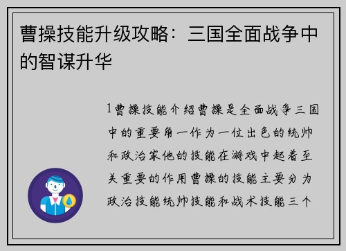 攻城霸业是一款深受策略游戏爱好者欢迎的战争策略游戏。它拥有广阔的地图、丰富的兵种和多样的玩法,让玩家能够尽情体验古代战争的魅力。为了帮助各位玩家在游戏中取得胜利,本文将提供一份全面详尽的攻城霸业攻略。 武将培养 武将是攻城霸业中至关重要的角色,他们的属性和技能直接影响着军队的战力。玩家需要通过招募、...